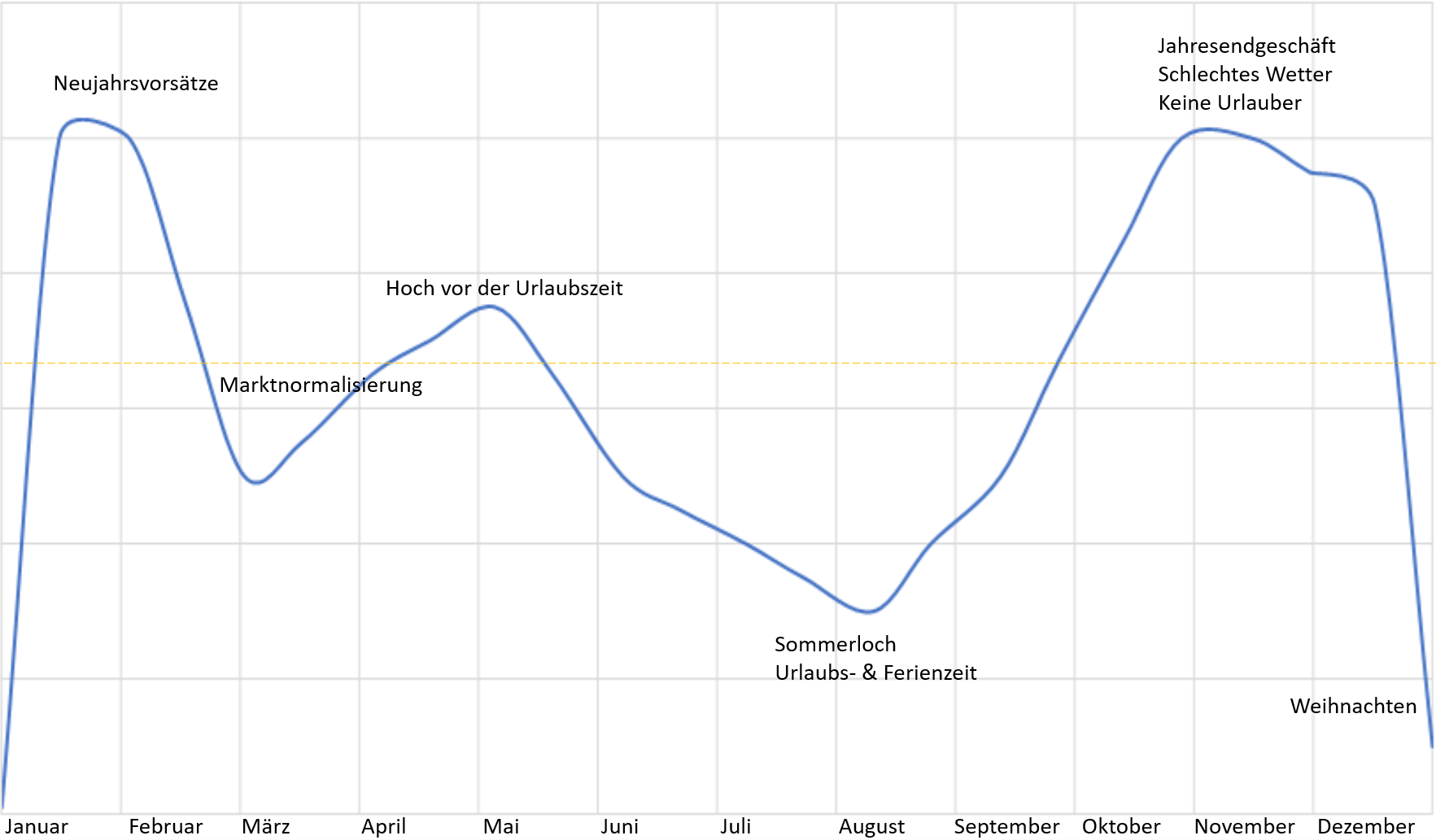 Der Graph hat keinen Anspruch auf Garantie und Proportionalität, sondern zeigt nur eine Tendenz. Der Graph kann für deine Zielgruppe auch genau umgekehrt sein oder anders verlaufen.