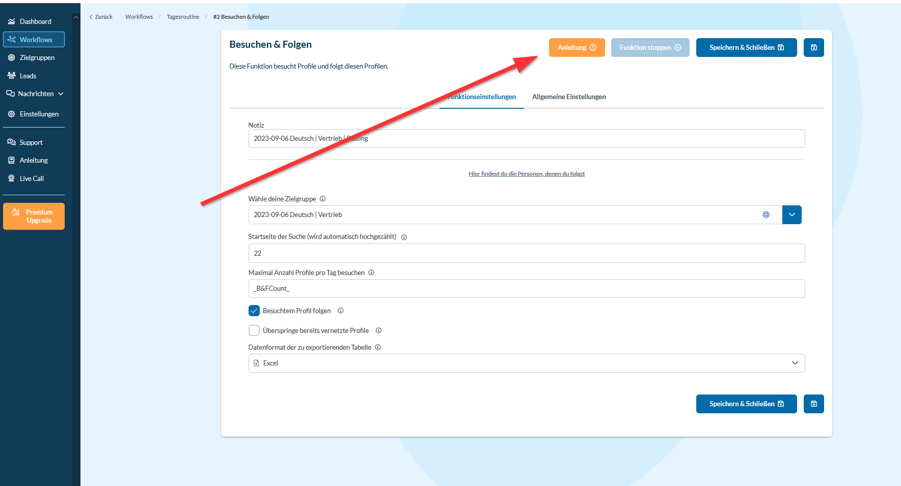Um Änderungen in den Funktionen vorzunehmen, klicke auf diesen Button.