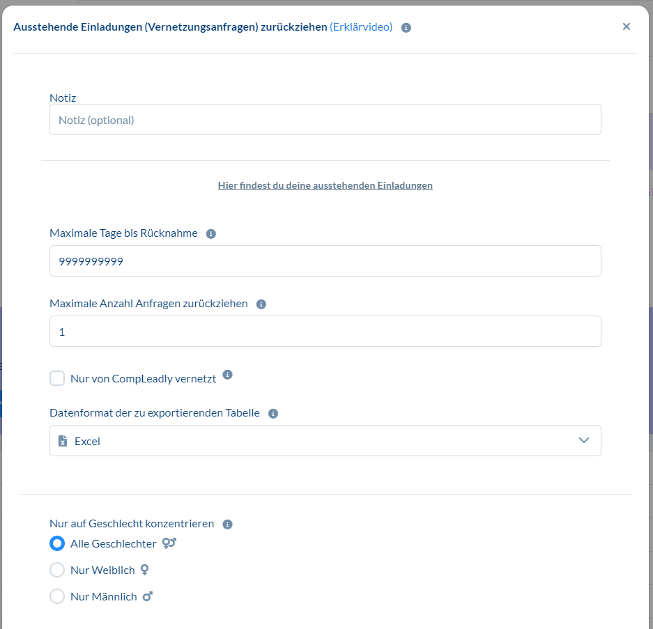 Bitte beachte, dass LinkedIn diese Kontakte für 30 Tage für eine erneute Vernetzung sperrt. Deshalb ist auch standardmäßig eine Wartezeit von 50 Tagen vorgesehen in CompLeadly