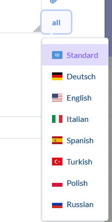 Wenn du auf das "all" klickst, werden dir verschiedene Sprachen angezeigt.