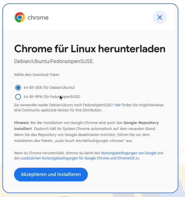 ➔ https://linux.compleadly.de/ - Danach lade das Chrome für Linux herunter