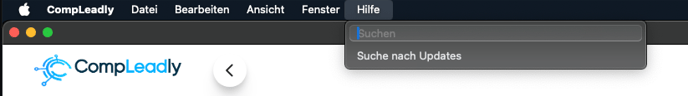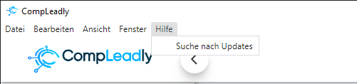 CompLeadly updaten Klicke oben im Fenster auf "Hilfe", dann auf "Suche nach Updates", um das Update zu erhalten. CompLeadly führt das Update auch automatisch bei Neustart der Software aus Bei Windows und Linux Bei MacOS