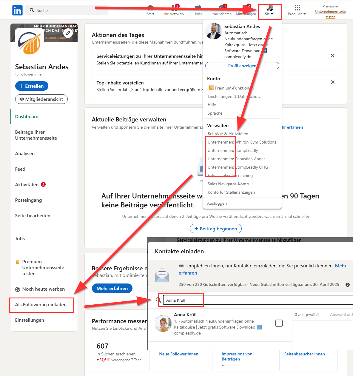Bei Follower zur Unternehmensseite einladen