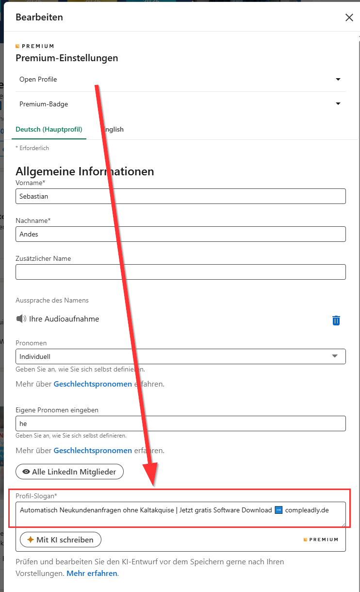 Dein Titelbild und Profilslogan auf LinkedIn ändern