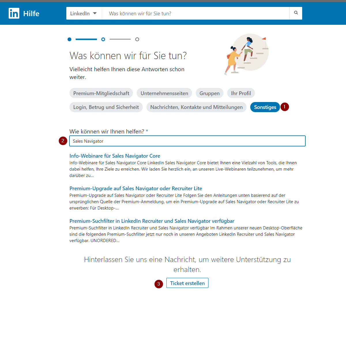 Den Linkedin Support kontaktieren #ticket erstellen Öffne https://www.linkedin.com/help/linkedin/solve/contact Klicke auf Sonstiges Tippe deine Frage ein Drücke Enter Klicke unten auf Ticket erstellen Verfasse dein Ticket an LinkedIn