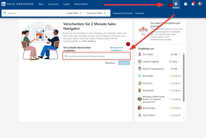 Den Sales Navigator 2 Monate kostenlos verschenken/empfehlen