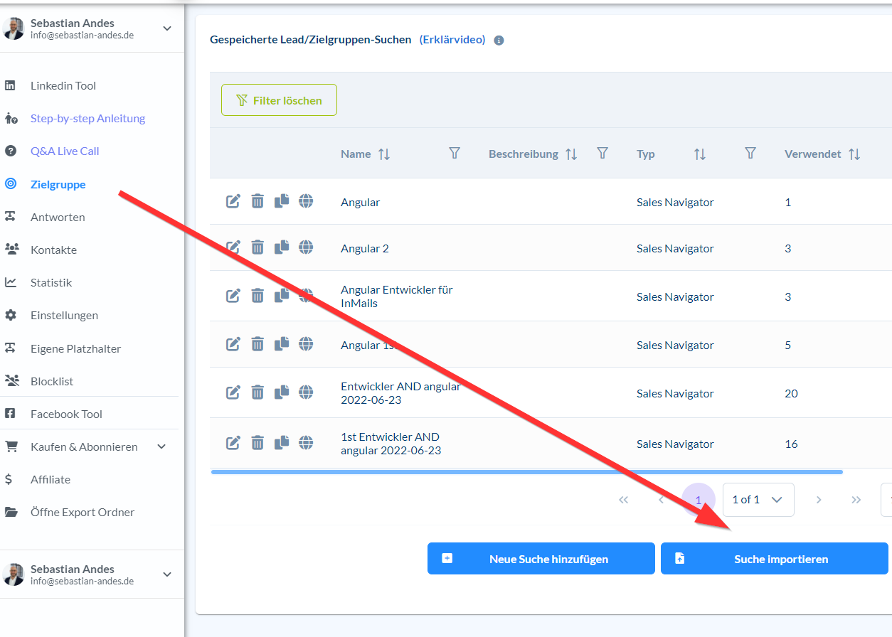 Eine Tabelle mit deiner Zielgruppe importieren