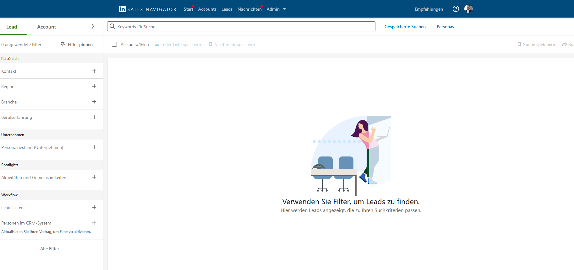 ➔ Ich habe zwei Sales Navigator zur Auswahl und CompLeadly öffnet die Suche nicht.
