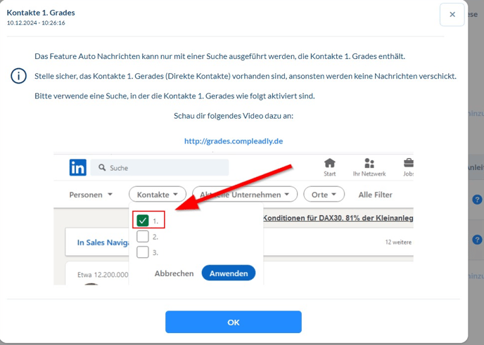 Fehlermeldung bei 1. Kontakte in CompLeadly und Sales Navigator