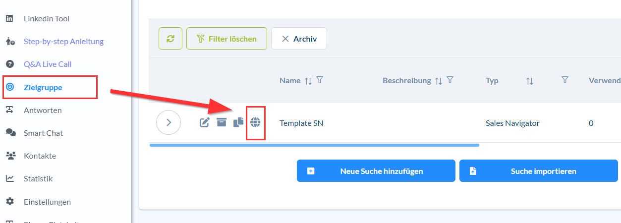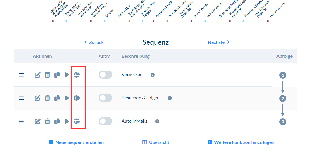 Globus Symbol Das Globus Symbol öffnet deine Zielgruppe In der Sequenz In der Funktion In der Zielgruppenübersicht