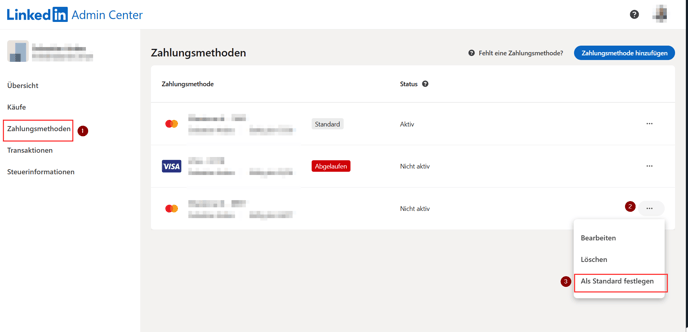 Anleitung zur Verwaltung von Zahlungsmethoden im LinkedIn Admin Center