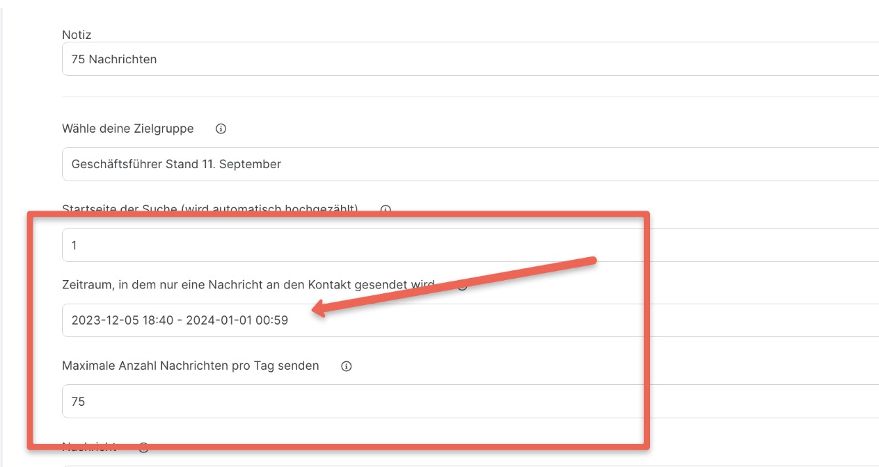pro Kontakt wird in diesem Zeitraum genau eine Nachricht über diese Funktion gesendet