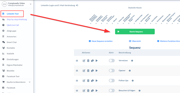 Um eine Sequenz manuell zu starten, öffne zunächst die Sequenzansicht. Dort findest du den Start-Button direkt in der jeweiligen Sequenzübersicht. Ein Klick auf diesen Button startet die Sequenz sofort.