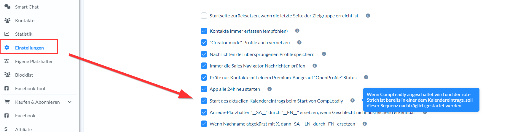 CompLeadly soll beim Start den aktuellen Kalendereintrag automatisch starten