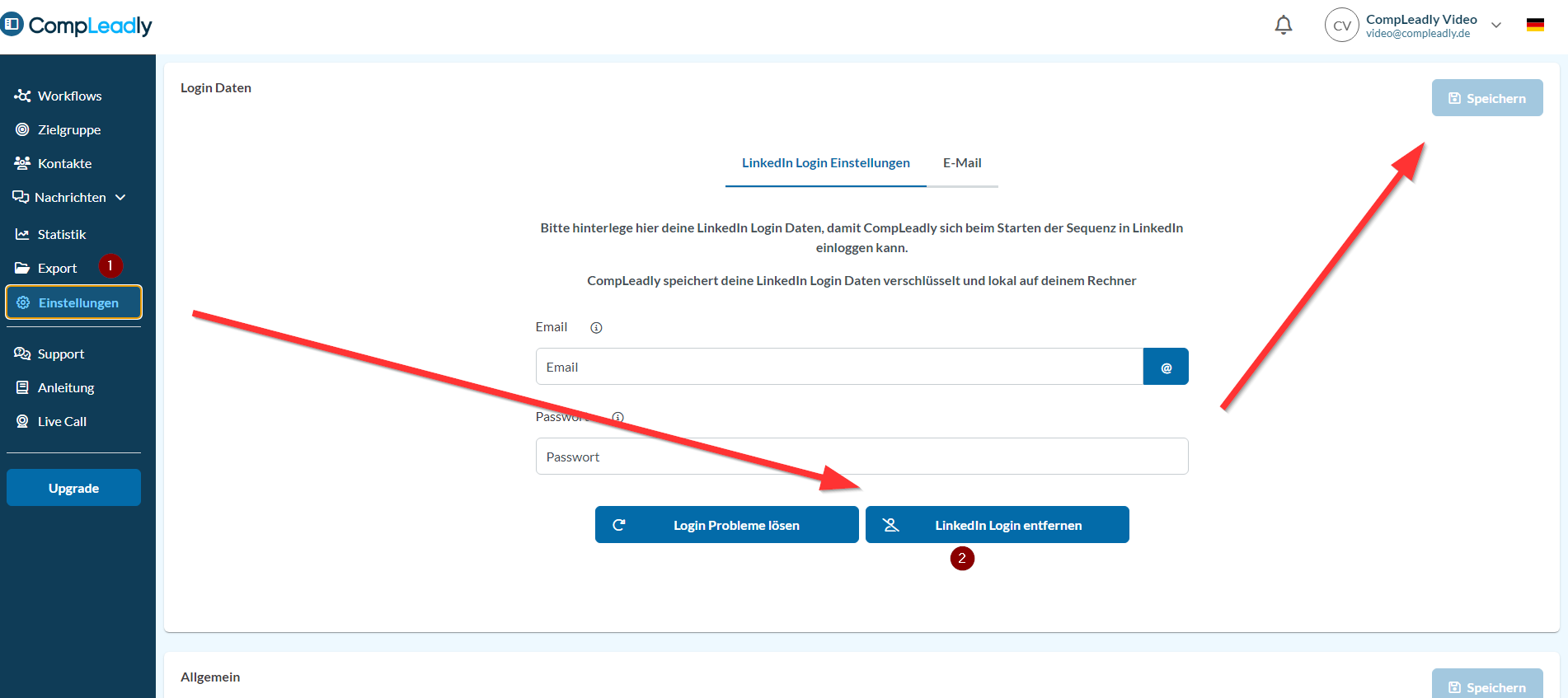- Klicke in CompLeadly auf Einstellungen