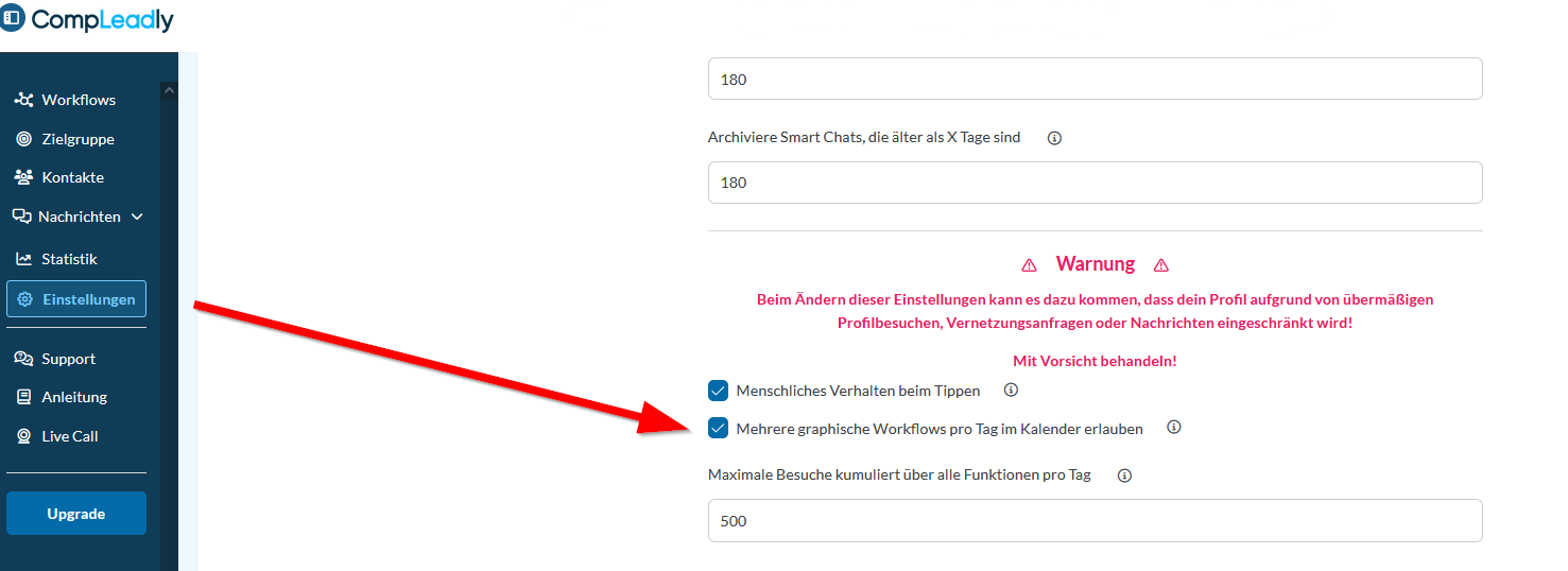 Wir empfehlen keine Workflows mit grafischer Oberfläche mehrmals am Tag zu planen, weil der erste geplante Workflow bereits alle Tages-Limits verwenden wird.