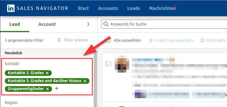 Speichere die so neu entstandene Zielgruppe wieder in CompLeadly z.B. mit dem Zusatz "Direkte Kontakte".