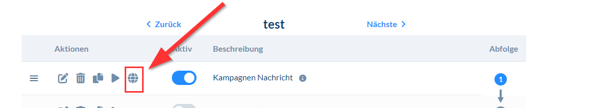 Um die Prüfung durchzuführen, klicke auf das Globus-Symbol der Funktion.