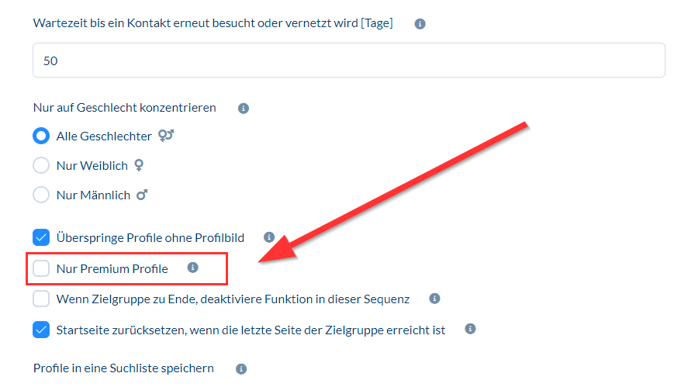 Sehr wahrscheinlich hast du ausgewählt, dass nur Premium Profile angeschrieben werden sollen. Das kannst du in der Funktion entsprechend aktivieren/deaktivieren.
