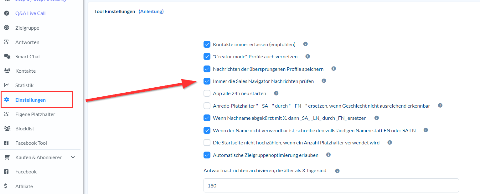 Funktion "Immer die Sales Navigator Nachrichten prüfen"