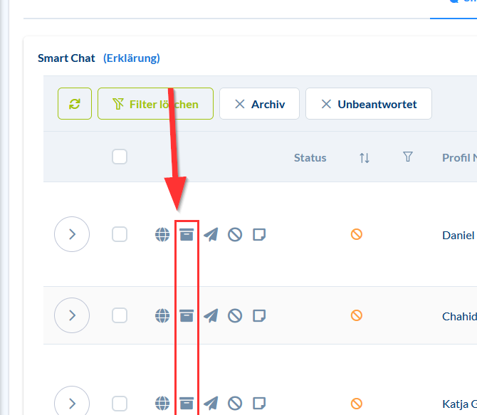 Archivierte Nachrichten werden nicht angezeigt, sodass der Smart Chat aufgeräumter aussieht.