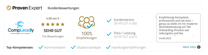 Auch ohne Bewertungstexte kannst du Zahlen nennen: „Mehr als 300 Personen haben unser Training durchlaufen.“ Oder „Über 1.000 Stunden Erfahrung mit Vertriebsgesprächen in genau dieser Branche.“