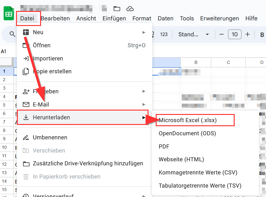 Wähle dann im Speichern-Dialog den Datentyp ".xlsx" aus.