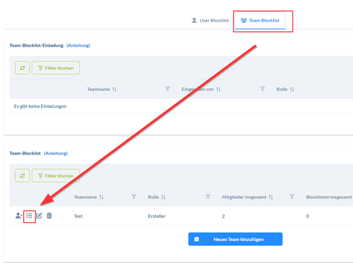 Verwaltung deines Teams und der Teamblockliste