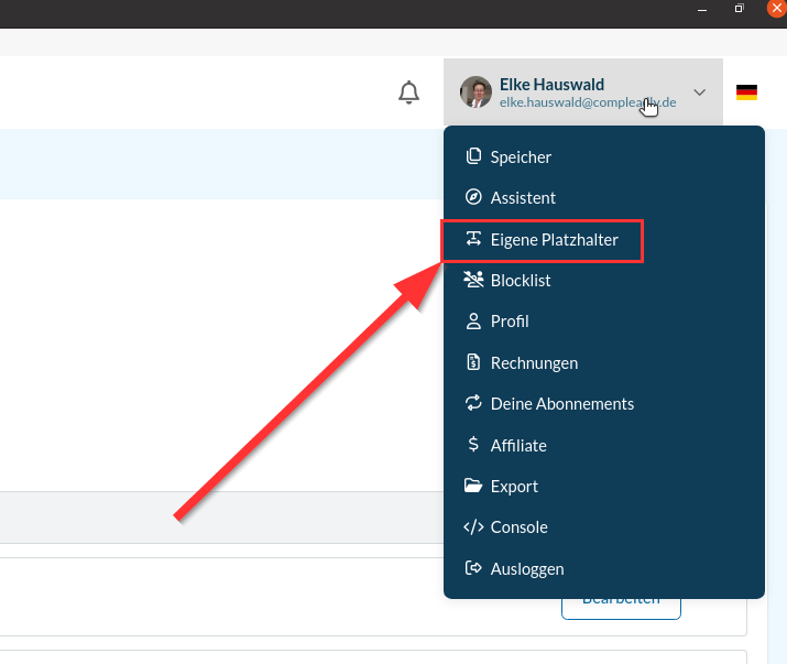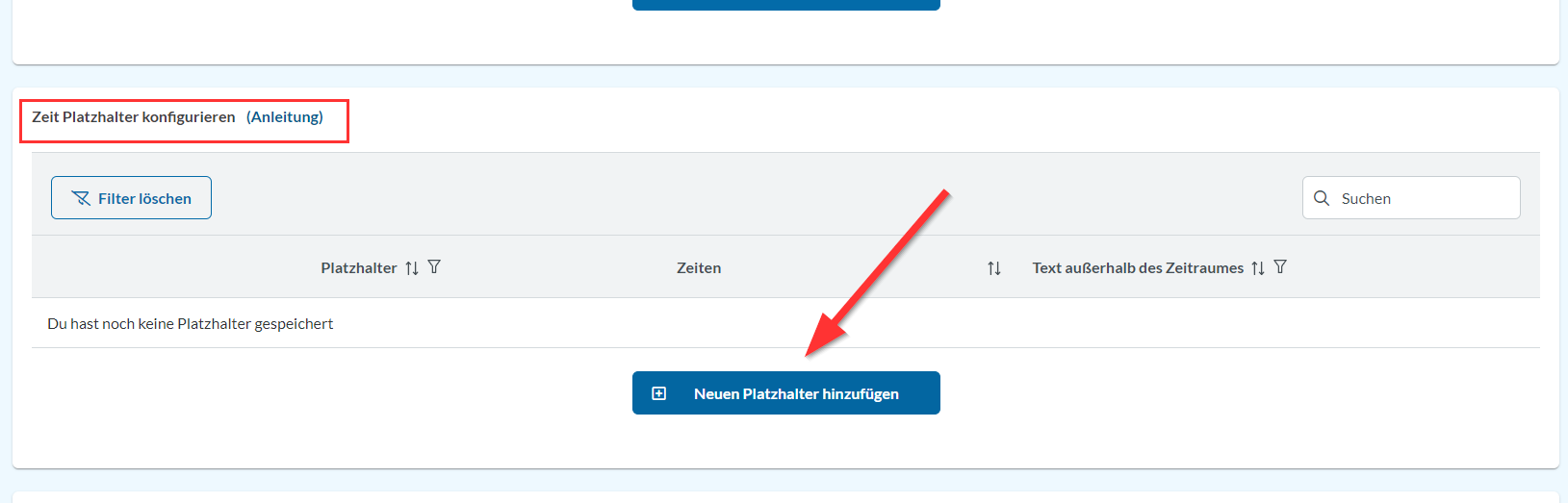 Du kannst auch einen Platzhalter anlegen. Den findest Du, wenn Du oben rechts auf Deinen Namen klickst und dann auf „Eigene Platzhalter“ gehst. Dort wählst Du den Bereich „Zeitplatzhalter“ aus und legst einen neuen an.
