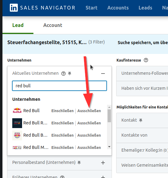 Unternehmen oder Mitarbeiter eines Unternehmens im Sales Navigator ausschließen / blockieren