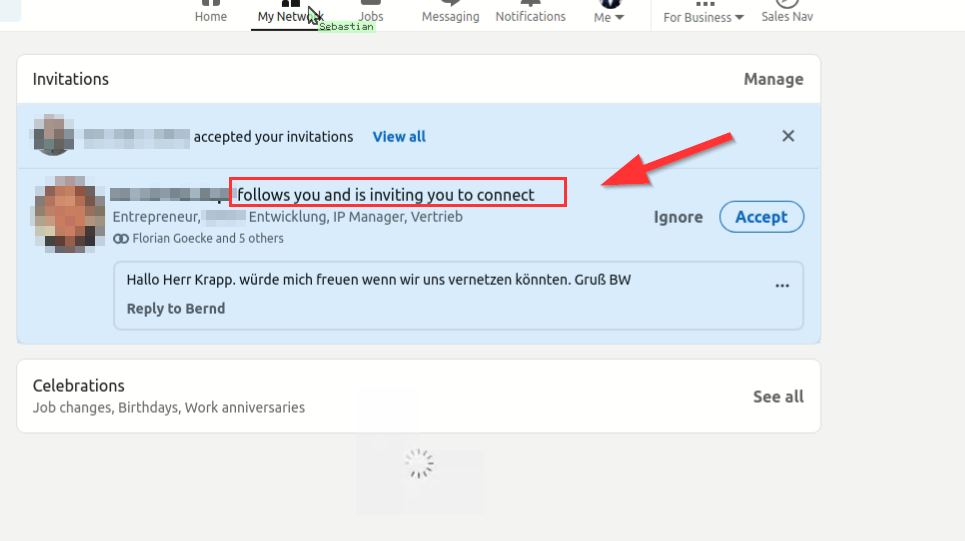 Das führt zur erhöhten Annahmerate: Indem Du zuerst folgst, gibst Du der Person die Möglichkeit, Dein Profil und Deine Aktivitäten auf LinkedIn zu sehen. Wenn Du dann später eine Vernetzungsanfrage sendest, ist die Wahrscheinlichkeit höher, dass sie diese annimmt, da sie bereits mit Dir vertraut ist.