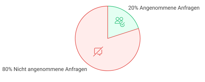 Viele Nutzer:innen sind zufrieden, wenn etwa 20 % ihrer Anfragen angenommen werden. Das bedeutet: Jede fünfte Person klickt auf „Annehmen“. Gleichzeitig heißt das auch, dass vier von fünf Personen nicht reagieren oder ablehnen.