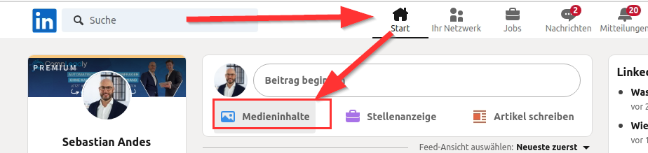 - Erstelle einen Beitrag auf LinkedIn und lade dein Video dort hoch.