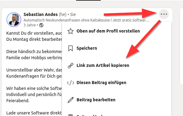 - Sobald der Beitrag veröffentlicht ist, kopiere den Link.