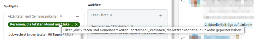 Der wohl wichtigste Suchfilter ist "Personen, die letzten Monat etwas auf LinkedIn gepostet haben"