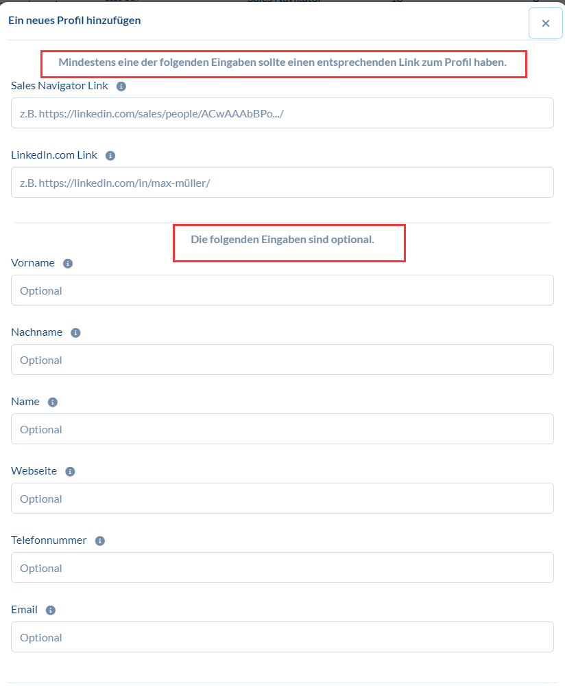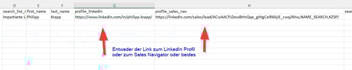 Entweder ein Sales Navigator Profil Link oder ein LinkedIn Profillink oder beides.