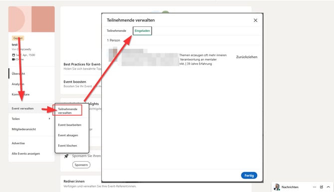 Wo finde ich die LinkedIn Event-Einladungen? (zum Zurückziehen)