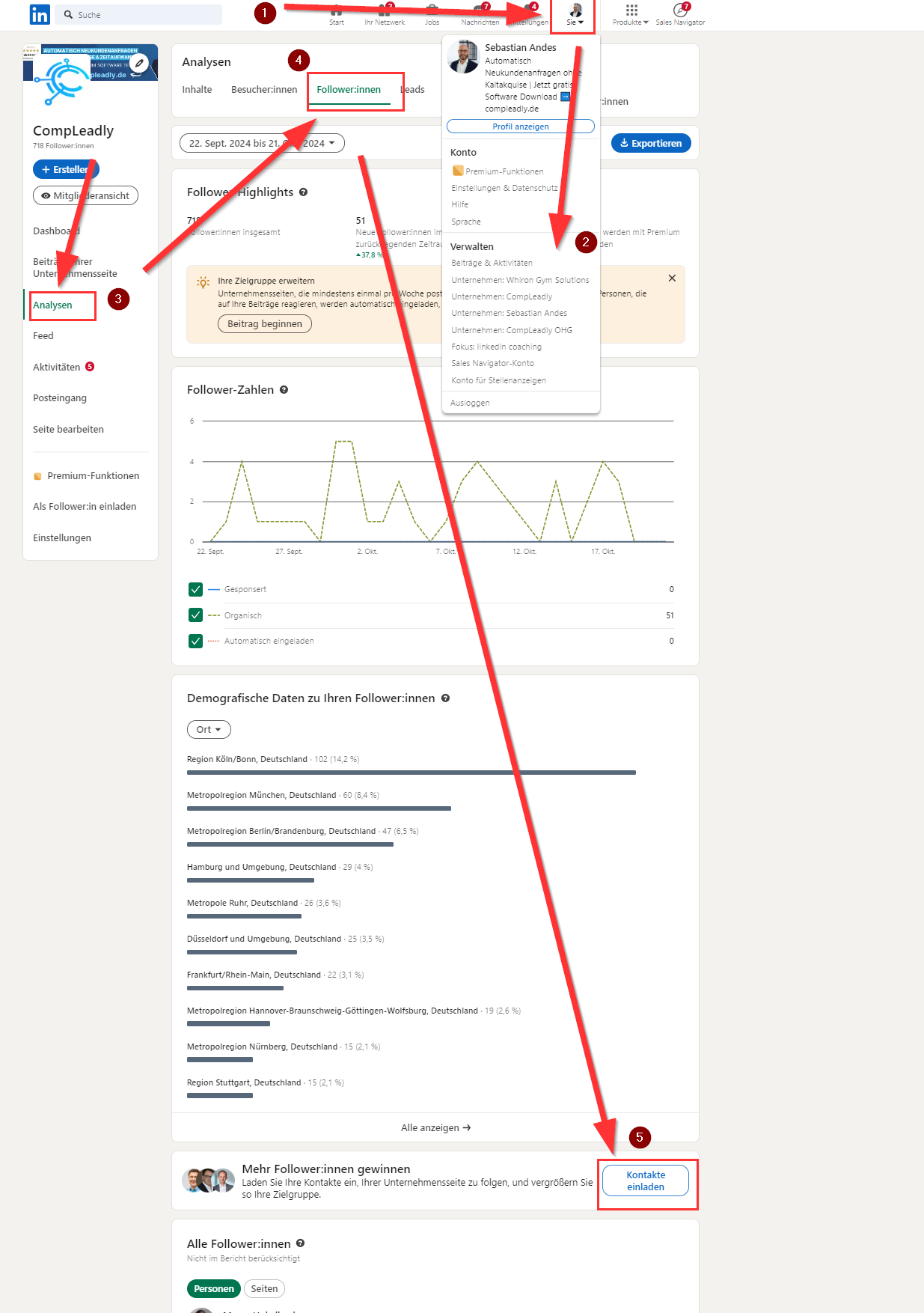 Wurden Leute zum Followen meines Unternehmens eingeladen?