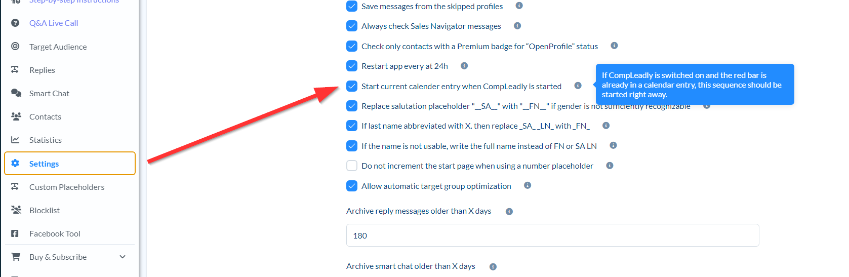Let CompLeadly start the current calendar entry when starting up