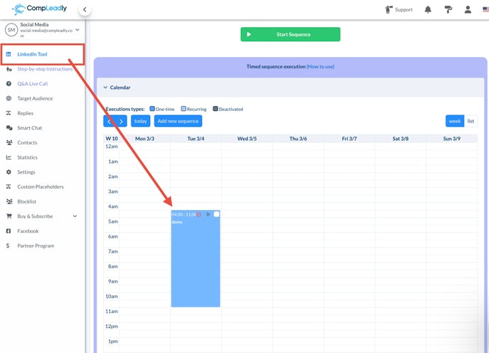 Alternatively, you can also start sequences in the Calendar View. Locate the corresponding sequence and click the Play Button. This button performs the same function as the Start Button in the Sequence View.