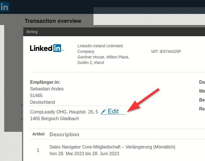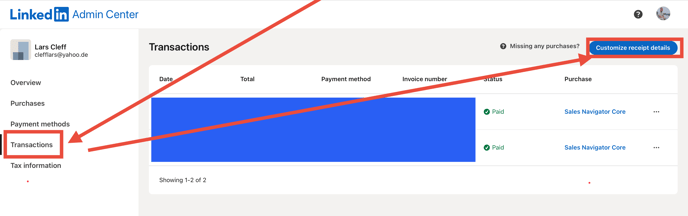 In the LinkedIn Admin Center under Transactions.