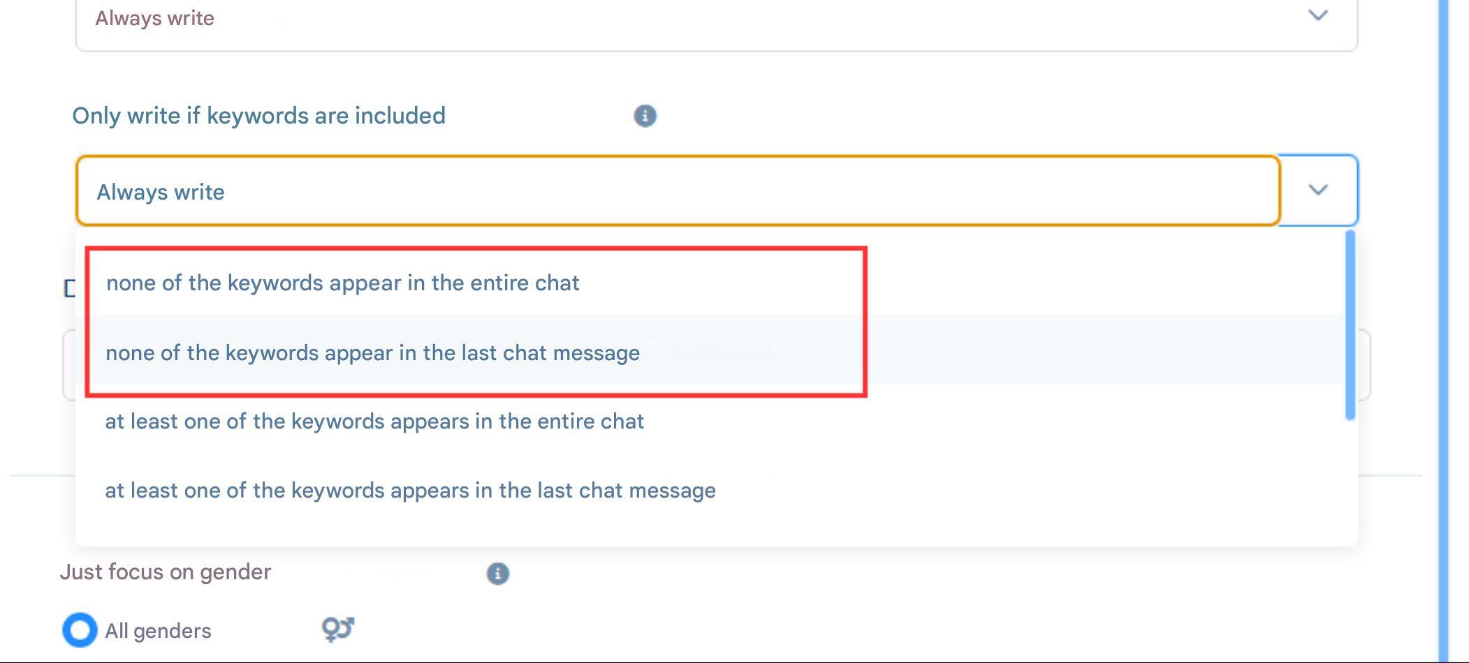 Keyword in last message / Keyword in the last message The specified keyword is present, so the campaign messages function does not message the contact according to the settings.