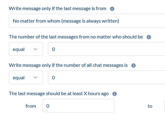 If there is no message in the chat, but the campaign message is to be sent, you must set campaign messages in this way. This is because the last message does not exist and does not come from you or the contact, but from no one (no matter who)