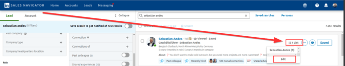 Remove a person from all lead lists. Open the contact in a Sales Navigator search (not in the lead list), Click on Lists, And then on Edit. There you can remove the contact from the lists.