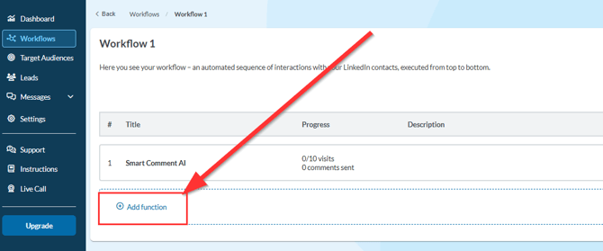 You can find the function by clicking on “Add Function” in your workflow.