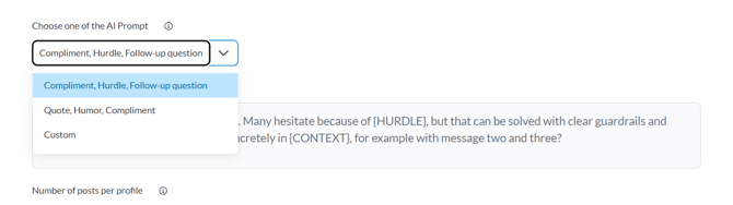 - How many posts per profile should be commented on (recommended: 1)