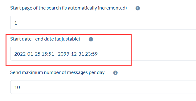 • For InMail and Auto Messages, entering a start date is required and is set by default to your registration date in CompLeadly.
