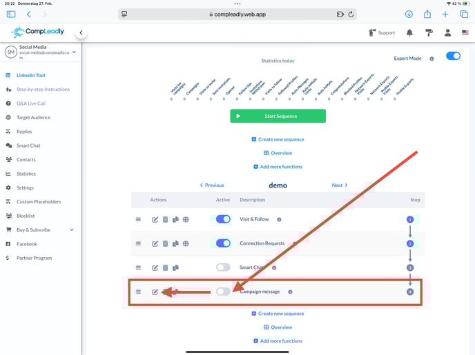 Problem: If a connection is made directly via LinkedIn (without using CompLeadly), the sequence does not automatically detect it. In such cases, the contact must be manually added to the sequence.