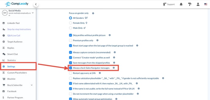 If the problem persists, disable the following checkbox in the CompLeadly settings: