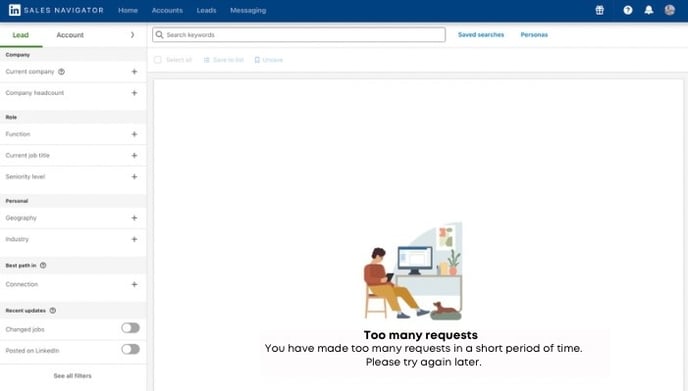 LinkedIn reports that you have made too many requests to the Sales Navigator.